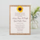 A rustic country wedding invitation features a burlap printed design with a printed sunflower at the top. This rustic announcement is perfect for a country wedding. Add your own wedding details to this rustic announcement. The back of the invitation also has burlap design. Use the "Customise It" if you would like to move things around, change the colours of the font, or add or delete lines of text.