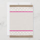 The design features a lovely rustic burlap effect background with a romantic vintage white lace and pink ribbon effect trim.