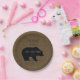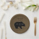 Rustic burlap bear baby boy shower paper plates-. Create your own personalised, rustic burlap baby shower style with a woodland forest animals theme- Shabby, old burlap texture look background with shadow of black bear the centre of attention. On bear is customised 'name' baby shower in whimsical letters that look handwritten. Date beneath. Reads 'Thank You' at the top in traditional style, black letters. Custom burlap bear baby shower plates match rustic forest animals baby shower styles, zoo theme showers, and boy baby shower party supplies. Matching bear paper napkins are available in our Zazzle.com/angela65* store as well as other boy baby shower supplies and decor.