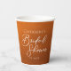 This rustic burnt orange bridal shower party paper cup features beautiful white typography for an autumn party featuring boho colours for a fall wedding. Minimalist white typography for a bohemian bride.