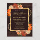 Gorgeous Rustic Watercolor burnt orange fall autumnal flowers floral design on a brown wood background with gold foil border