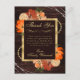 This warm and elegant thank‑you postcard features a rich rustic wood background adorned with vibrant fall florals in shades of burnt orange, deep red, peach, and cream. Soft string lights drape across the top, adding a cosy, glowing ambiance that beautifully complements the autumn palette. A refined gold frame highlights your message, bringing a touch of sophistication to the rustic design. Perfect for fall birthdays, barn venues, outdoor celebrations, or anyone who loves seasonal stationery with a polished finish. Personalise the name and message to create a heartfelt keepsake your guests will truly appreciate.
