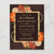 Gorgeous Rustic Watercolor burnt orange fall autumnal flowers floral design on a brown wood background with gold foil border