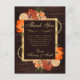 Gorgeous Rustic Watercolor burnt orange fall autumnal flowers floral design on a brown wood background with gold foil border