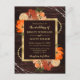 Gorgeous Rustic Watercolor burnt orange fall autumnal flowers floral design on a brown wood background with gold foil border and string lights