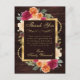 Gorgeous Rustic Watercolor burnt orange and red fall autumnal flowers floral design on a brown wood background with gold foil border