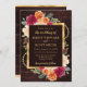 Gorgeous Rustic Watercolor burnt orange and red fall autumnal flowers floral design on a brown wood background with gold foil border