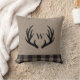 Rustic Cabin Lodge Antlers Monogrammed Throw Pillow - Natural rustic linen background with black an tan buffalo plaid, antlers and monogram. With our high quality template you can easily personalise our pillow and make it truly unique for your home or cabin. Makes a very thoughtful gift. If you need assistance personalising your pillow, please don't hesitate to reach out.