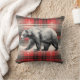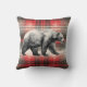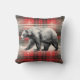 Rustic Cabin Lodge Bear on Red Plaid Cushion