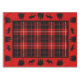 Rustic cabin in the woods design with a red, black, and cream plaid. Thick red stripe with black silhouettes of trees and moose. The red is changeable! Swap out the red for any colour you prefer.