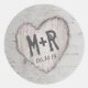 Rustic Carved Heart Initials Birch Tree Wedding Classic Round Sticker