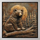 Rustic Carved Wood Bear Pine Trees Setting Sun Poster
