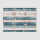 Rustic celestial stripe pattern tissue paper featuring moon phases, sun symbols, and tribal-inspired details in earthy teal and clay tones. A calm, grounding design ideal for boho lovers, spiritual creatives, and nature-inspired interiors. A thoughtful gift for moon watchers, astrology fans, and earthy souls.