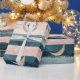 Rustic celestial stripe pattern wrapping paper featuring moon phases, sun symbols, and tribal-inspired details in earthy teal and clay tones. A calm, grounding design ideal for boho lovers, spiritual creatives, and nature-inspired interiors. A thoughtful gift for moon watchers, astrology fans, and earthy souls.