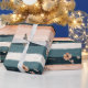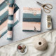 Rustic celestial stripe pattern wrapping paper featuring moon phases, sun symbols, and tribal-inspired details in earthy teal and clay tones. A calm, grounding design ideal for boho lovers, spiritual creatives, and nature-inspired interiors. A thoughtful gift for moon watchers, astrology fans, and earthy souls.