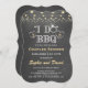 Unique, rustic design card featuring beautiful I DO BBQ typography (letter O replaced by a ring), hearts for initials, string lights, on an old wood background. Use Customise tool to add your info. See, also, my I DO BBQ Chalkboard/Barn and Gingham collection.