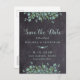 Rustic Chalkboard Eucalyptus Greenery Wedding Save Announcement Postcard