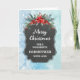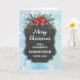 Merry Christmas for godmother card with rustic country chalkboard pattern and winter foliage with poinsettias.