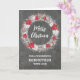 Merry Christmas for godmother card with rustic country chalkboard pattern and snowy wreath with poinsettias.