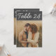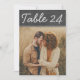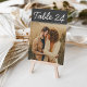 Bold chalk-style calligraphy and a dark chalkboard background frame your favourite photo on this rustic wedding table number card. The vintage chalkboard look pairs perfectly with barn, vineyard, and outdoor reception settings. To customise, type in the table number, click Change by the default photo to upload your own, and add that individual table number card to your shopping cart. Repeat for all of the table numbers that you need.