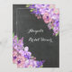 Personalised bridal shower invitations in rustic chalkboard pattern with purple watercolor vintage flowers. Perfect for a spring or summer wedding showers.