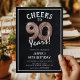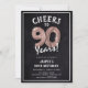 Celebrating turning 90! These 90th birthday party invites are designed with the title 'Cheers to 90 Years!'. Featuring a rustic chalkboard background, rose gold number ninety helium balloons, trendy white typography and a simple birthday party template that is easy to customise.