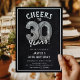 Celebrating turning 30! These 30th birthday party invites are designed with the title 'Cheers to 30 Years!'. Featuring a rustic chalkboard background, silver number thirty helium balloons, trendy white typography and a simple birthday party template that is easy to customise.