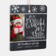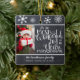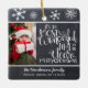 Beautiful typography based holiday ornament. "It's the most wonderful time of the year" appears in white hand-lettered typography on a charcoal grey chalkboard background accented with white snowflakes featuring a family photo.