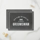 Custom-designed "Will You Be My Groomsman" proposal card featuring modern rustic design on chalkboard style background.