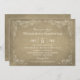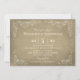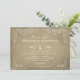 This formal wedding shower invitation card with a vintage wine label style design. Rustic hand-drawn sketches of grapevine leaves frame the important details. A simple flourished design with the event date appears on the reverse side. Elegant and neutral ivory and champagne gold / tan colour scheme.