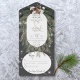 ALSO AVAILABLE WITH A QR CODE TO SCAN OR WITH DINNER SELECTIN OPTIONS. This design features a rustic green pine and pinecone bouquet on a soft charcoal background with white flowers. It is accented with a white sparkle overlay to illustrate the magic of the beautiful winter holidays. Perfect for a Christmas or winter wedding. Personalised All-In-One invitations are a unique combination of both a beautifully printed custom invitation with an easy to tear off perforated RSVP postcard. And they are so easy to use! You simply fold, then seal the back flap with the three included clear stickers, and mail. And when your guests receive your custom invite, they just tear the perforated RSVP Card off and drop it back in the mail to you!