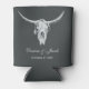 Rustic charcoal grey white bull cow skull country western cowboy wedding reception beer can cooler favours for guests. Vintage farmhouse inspired. Old wild west antique style. Simple, cool, trendy, modern farm animal design. Personalise your script. Image copyright Marg Seregelyi Photography.