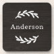 Rustic Charcoal Wood Laurel Monogram Name Coaster