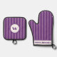 Rustic Charm Purple Striped Oven Mitt & Pot Holder Set