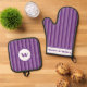 Add some country style to your kitchen with these Rustic Charm Purple Striped Oven Mitt & Pot Holder Sets. The stripes in three captivating shades of purple create a pleasing visual effect against the white customisation areas, which are outlined in a complementary shade of purple. A personalised purple monogram letter on the hot pad and custom text at the bottom of the oven mitt add a unique touch, making these sets perfect for a personal gift. Available as a set or individually - you can choose to get just an oven mitt or just a pot holder. Order yours today to add sophistication to your kitchen or to brighten the day of a friend or loved one with a thoughtful, personalised present.