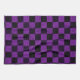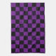 This moody kitchen towel features a pattern of rustic checks, checkers that are distressed in purple and black.