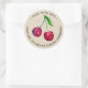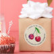 Round stickers with cherry illustration and curved “Made With Love” text