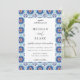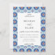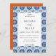 Beautiful blue and rust geometric Spanish tile frame pattern, wedding invitation. Back of invitation features solid trendy rust colour. Font styles and colour can be customised.