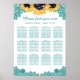Complement your teal rustic country, garden, backyard, or barn wedding party with this teal rustic chic seating chart for 12 tables featuring sunflower flowers and floral lace. Matching items available.