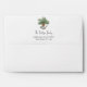 Order these customised envelopes with printed return address to match the Chickadee Christmas cards, featuring a cute watercolor chickadee perched upside down on a pine cone dangling from an evergreen branch.