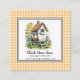 Rustic Chicken Coop Farm Fresh Eggs Square Business Card - A great way to make a first and lasting impression. Our business card template features watercolor chicken and chicken coop with flowers and a yellow gingham border.