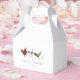 Rustic and elegant farm theme wedding favour box featuring watercolor illustration of chickens and chick.