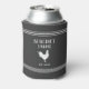 These cool personalised can coolers feature your family name or farm name on a charcoal grey background, with your year established and a chicken illustration. Rope stripe detailing at the top and bottom completes the design for a rustic farmhouse style look.