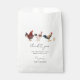 Boho and rustic farm theme baby shower favour bag featuring watercolor illustration of chicken and a chick.