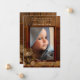 A rustic wood design memorial or child death announcement card with a comforting teddy bear and your custom photos. You can use this card to announce your loss or to create an invitation. You can delete the garden image on the back to reveal a dark brown background, which can be used for more text(s). Wishing you lots of strength and light!