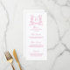 Cute rose pink, vintage inspired baby shower menu with a whimsical hand drawn floral monogram crest with butterflies and quirky handwritten font.