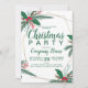 Modern Christmas corporate holiday party photo with red and green mistletoe and pine branches illustration with a geometric gold frame.