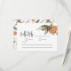 Rustic Christmas wedding RSVP card featuring watercolor illustration of winter botanicals including, mistletoe, pine tree branch, berries, orange, etc.