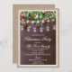Rustic Christmas Holiday Invitation String Lights Bokeh Mason Jars Burlap