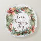 Rustic Christmas Holly Poinsettia Wreath Monogram Round Cushion